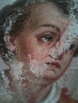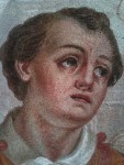 Particolare del volto di San Lorenzo. Reintegrazione cromatica ad acquarello.
